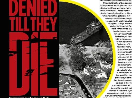 Then I started doing my interviews for this piece. It turned out that all the vets I was in touch with were trying to get benefits for exposure to Agent Orange, and all of them were being denied because they didn’t have “boots on the ground.” The story had changed.