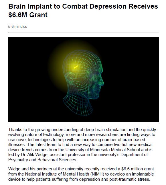 “Brain Implant to Combat Depression Receives $6.6M Grant,” AAMI, December 2020